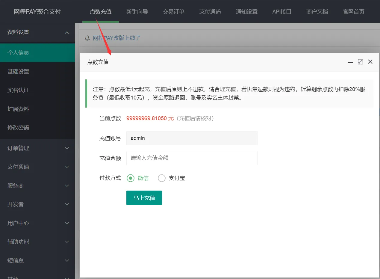 通过账户点数扣除:所有自行接入的通道需扣除您账户点数,详见订单-详情。