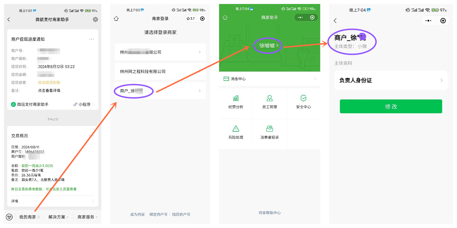 以微信为例,通过网程PAY(支付服务商)进件开通的个人商户号是可以在微信支付官方公众号(微信支付商家助手)查到的,主体类型:小微就是无营业执照的个人。