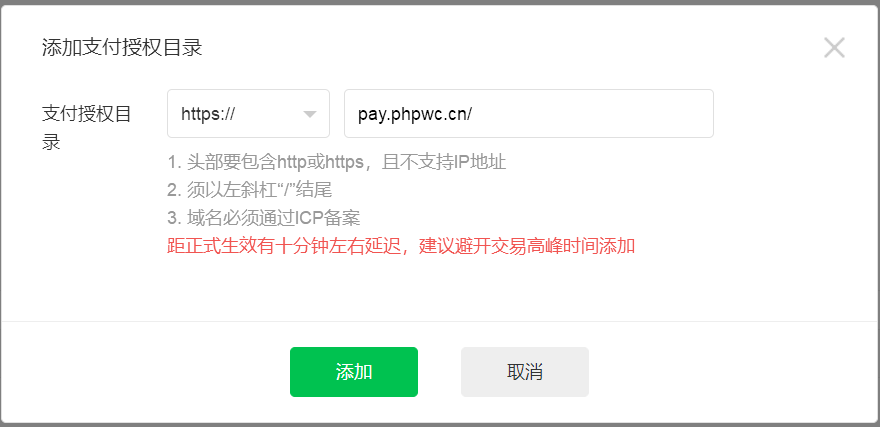 注意:前面选择 https,后面输入:pay.phpwc.cn/