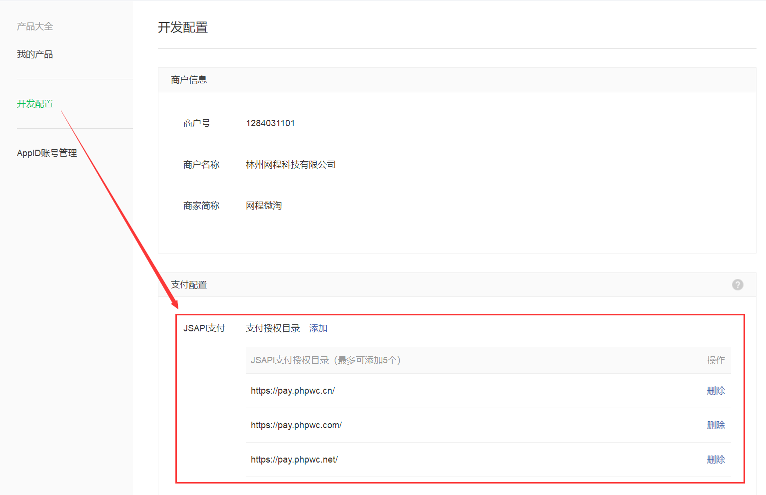 产品中心 - 开发配置 - jsapi支付 - 添加