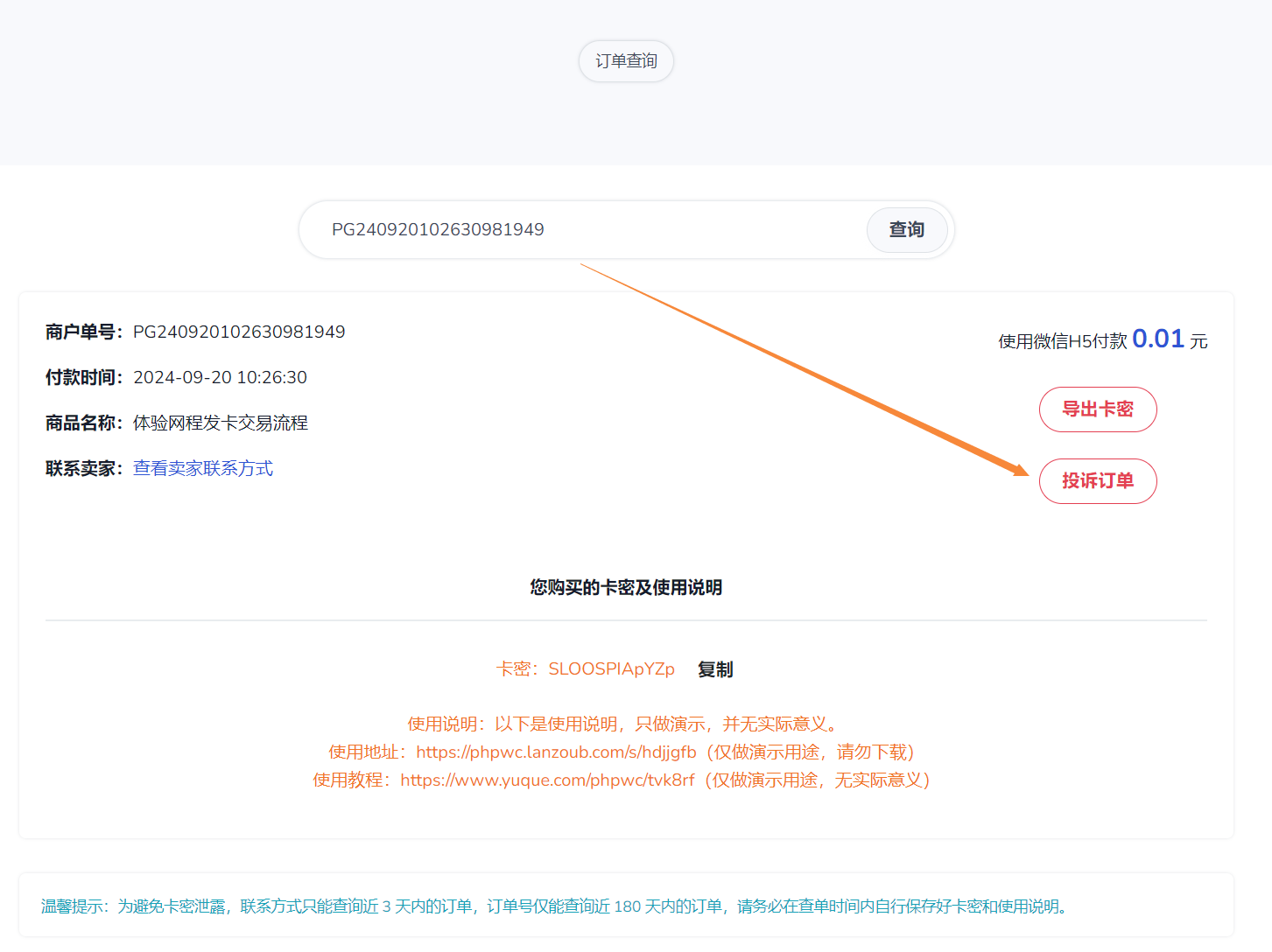 7、买家订单中心/查单页面必须有投诉链接,确保平台方可接收到消费者的投诉内容,然后根据平台规则进行处置,处置原则是尽量避免发生微信/支付宝侧的订单投诉。