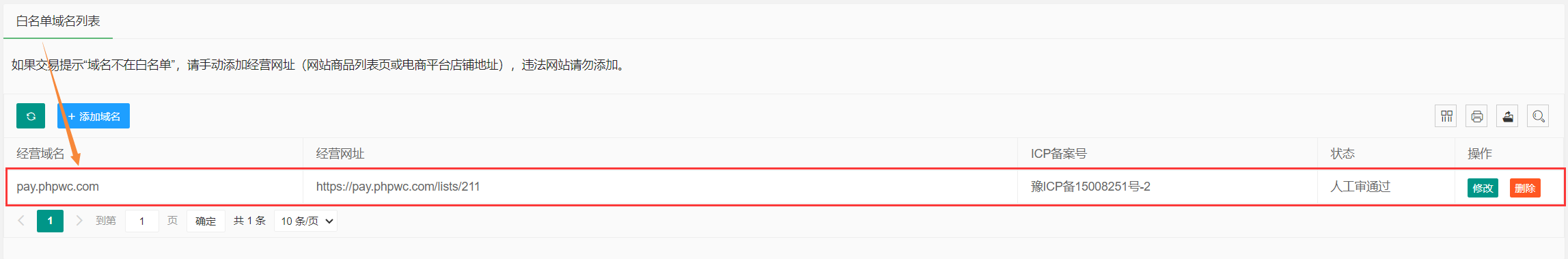2、如果有其他人添加过的域名被平台转为整站有效,则商户无需再添加,对于新商户来说,能发起支付则无需理会。